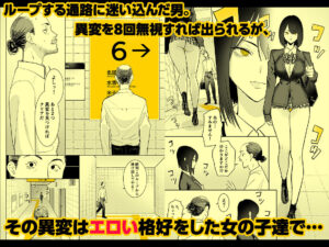 通路を進むほどに、その誘惑は露骨になっていく。ある時は「清掃員詰所」のドアが微かに開き、中から制服姿の少女が恥じらいながら手招きする。次のループでは、床の点字ブロックが、あたかも女体の柔らかな曲線を思わせるような官能的な模様へと変化しているかもしれない。天井の蛍光灯が切れて暗闇に包まれた瞬間、すぐ傍で吐息が聞こえ、温もりが感じられる…そんな「異変」さえも待ち受けている。見るもの、感じるもの全てがエロティシズムに満ちたこの世界で、あなたは8回、冷静に「異変を確認し、引き返す」という決断を下せるだろうか。それとも、いつしか「異変」との接触を求め、自らループの深淵へと足を踏み入れてしまうのだろうか。