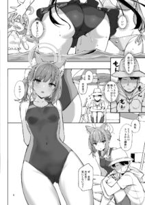 物語は、いつもと違う環境で高まる緊張と、解放感の中から始まります。例えば、無口でクールな印象のシロコが、最後まで競泳水着を脱がずに、その薄い生地の下で先生を慰めてくれる様子は、抑えた表情と大胆な行動のギャップに胸が高鳴ります。一方、恥ずかしがり屋でぽっちゃりとした体型が可愛らしいアヤネは、うっかり男湯に迷い込んだはずが、先生の懐にどっぷりと浸かってしまい、とろけそうな表情を見せてくれるでしょう。この「着たままのエロス」と「恥じらいからのとろけ」という対照的なアプローチは、たかやKi先生ならではのキャラクター洞察の深さと、官能的な表現力の賜物です。